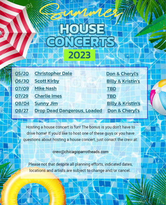 Looks like we kick off the House Concert season on May 20. Open to members, family and invited guests. Typically a small fee is collected for the band, BYOB, and dishes to share. Own chair and pop up canopy are encouraged but there is always enough room and extras if you don’t.