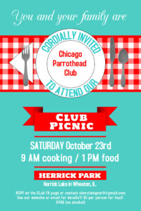 If you are not able to RSVP to the Chicago Parrothead Club Facebook event, please RSVP to cherylwegner9@gmail.com [image: Copy of Company Picnic.jpg]