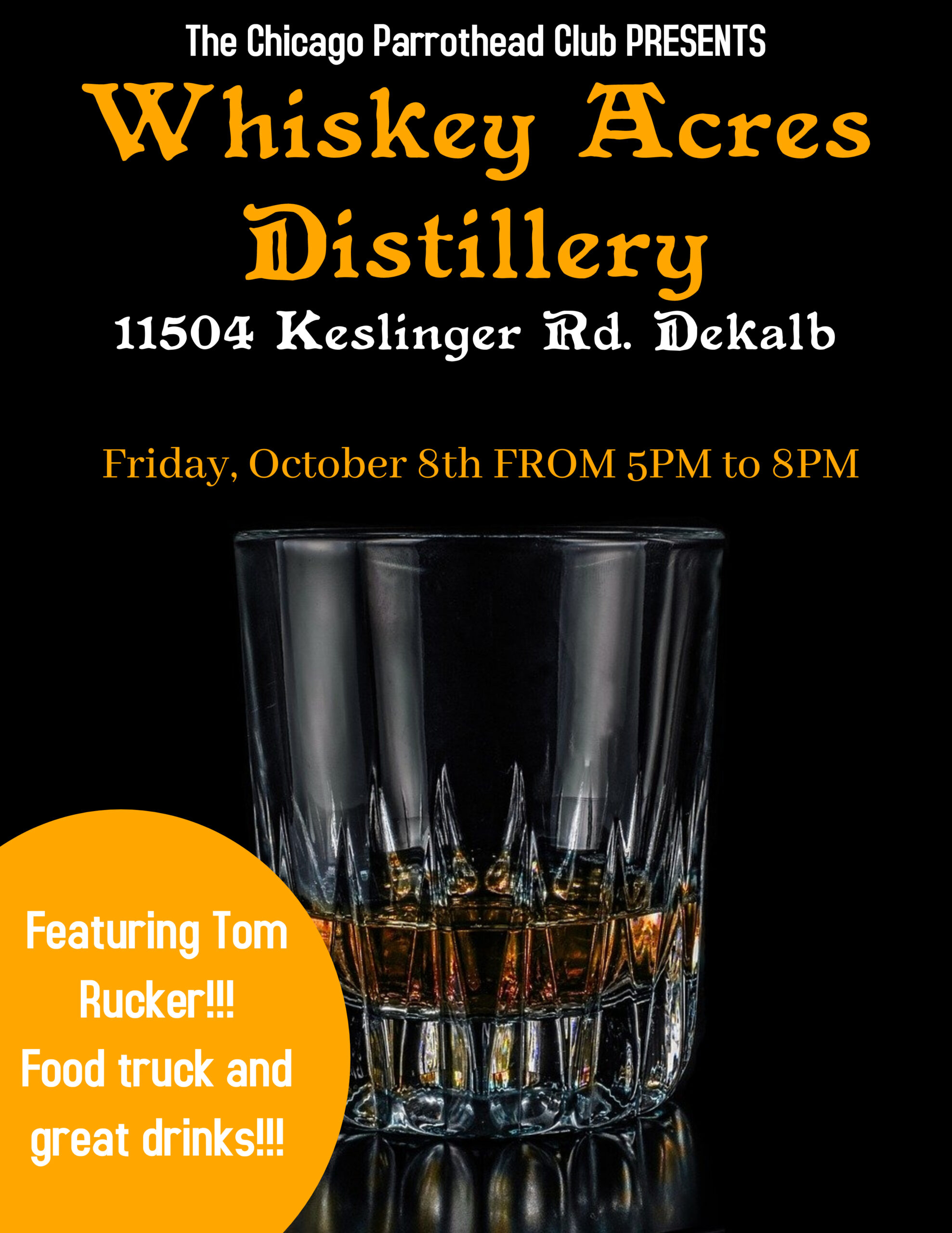 Live music by Tom Rucker at Whiskey Acres in DeKalb. Great drinks from the distillery and there will be a food truck serving tacos! See you there! www.whiskeyacres.com/foodtrucks/2021/6/11/tinez-tacos-yt4wt-4x4mx-jz45w . [image: Copy of whiskey wednesday flyer.jpg] Fins Up!