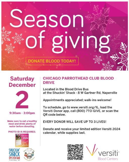 *CPHC will be hosting a Blood Drive Bus in the Parking Lot of the Shuckin Shack in Naperville on Saturday December 2 from 9:30 AM to 3 PM.*
