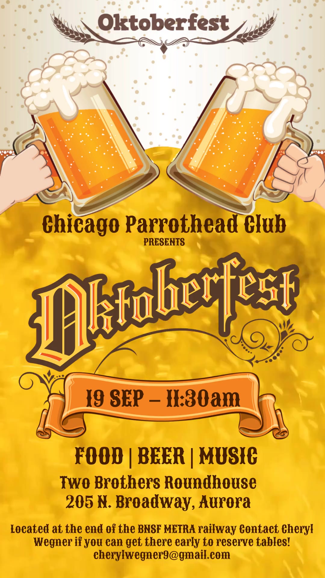 (Two Brothers is located right at the end of the BNSF Metra line in Aurora..so it’s easy to take the train)There isn’t a way for us to reserve tables for our group, so if anyone is willing to get there early and save tables, please let Cheryl Wegner know at cherylwegner9@gmail.com [image: Copy of Oktoberfest post.jpg]