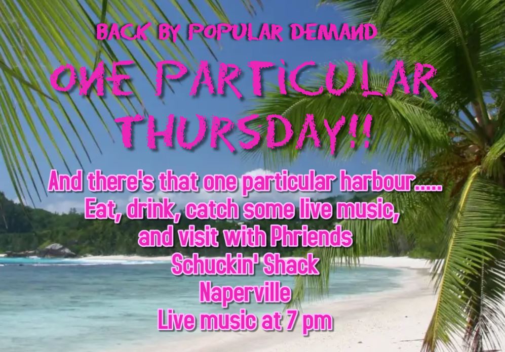 Drop in for a drink, a bite to eat, and some live music with phriends! Aug 3 from 6 to 9pm At the Shuckin Shack Oyster Bar 8W Gartner Rd Naperville